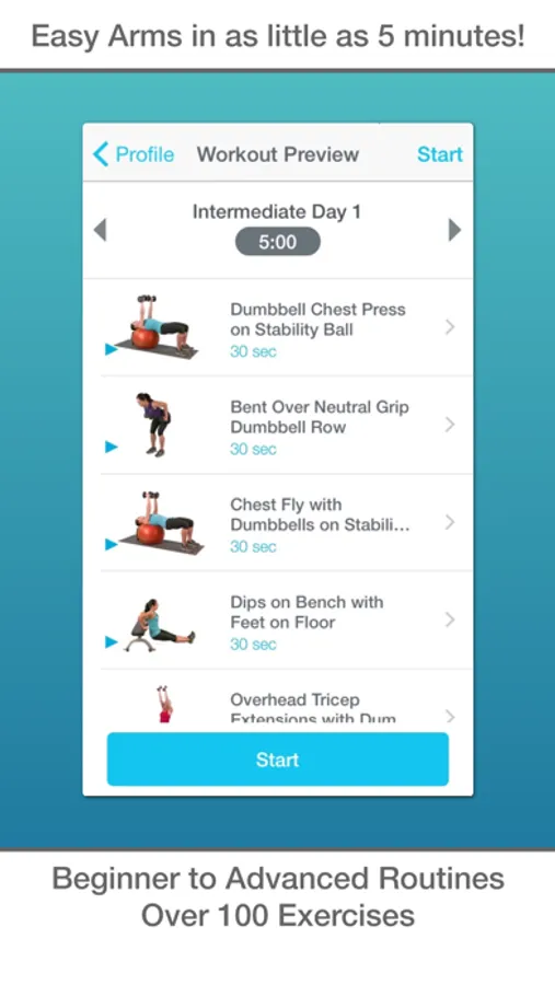 With Easy Arms you can do a quick 5-minute tone up whenever you have a free moment or you can push yourself with a killer 15 minute workout. Every workout is customized to your fitness level and to the equipment you have available.