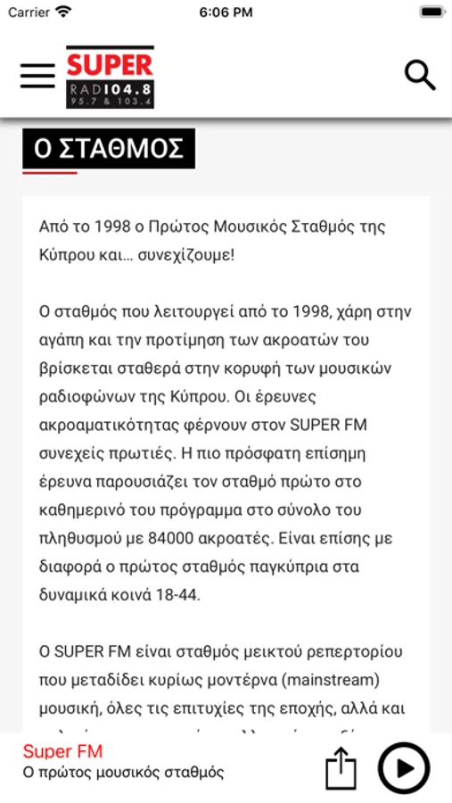 Ο πρώτος μουσικός σταθμός της Κύπρου, τώρα και στο iPhone/iPad σου!