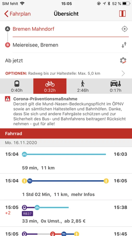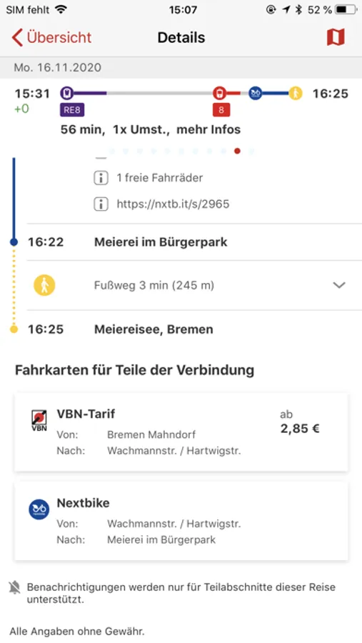 • Route planning not only with public transport but also with bikesharing from Nextbike, carsharing from cambio and taxi offers from TaxiDeutschland – so you always reach your destination!