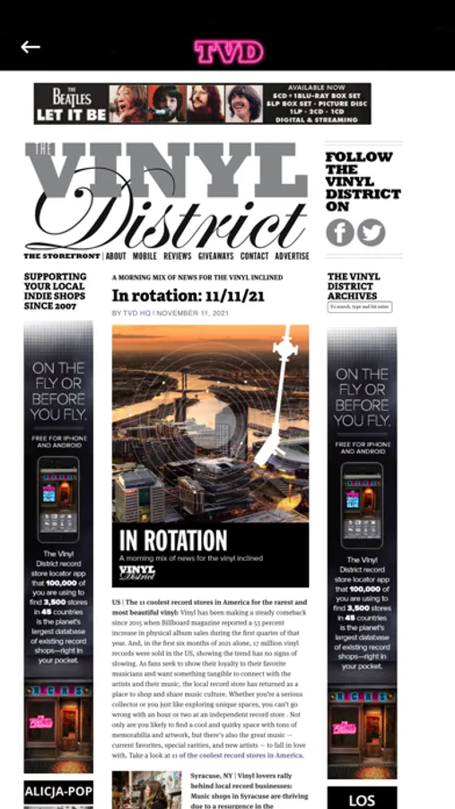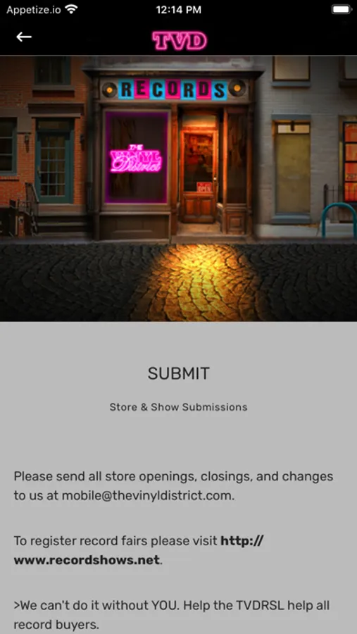 We're the original record store finder app in the United States! The Vinyl District does it all day, every day. We live it, and so do you. Reach us directly at info@thevinyldistrict.com.