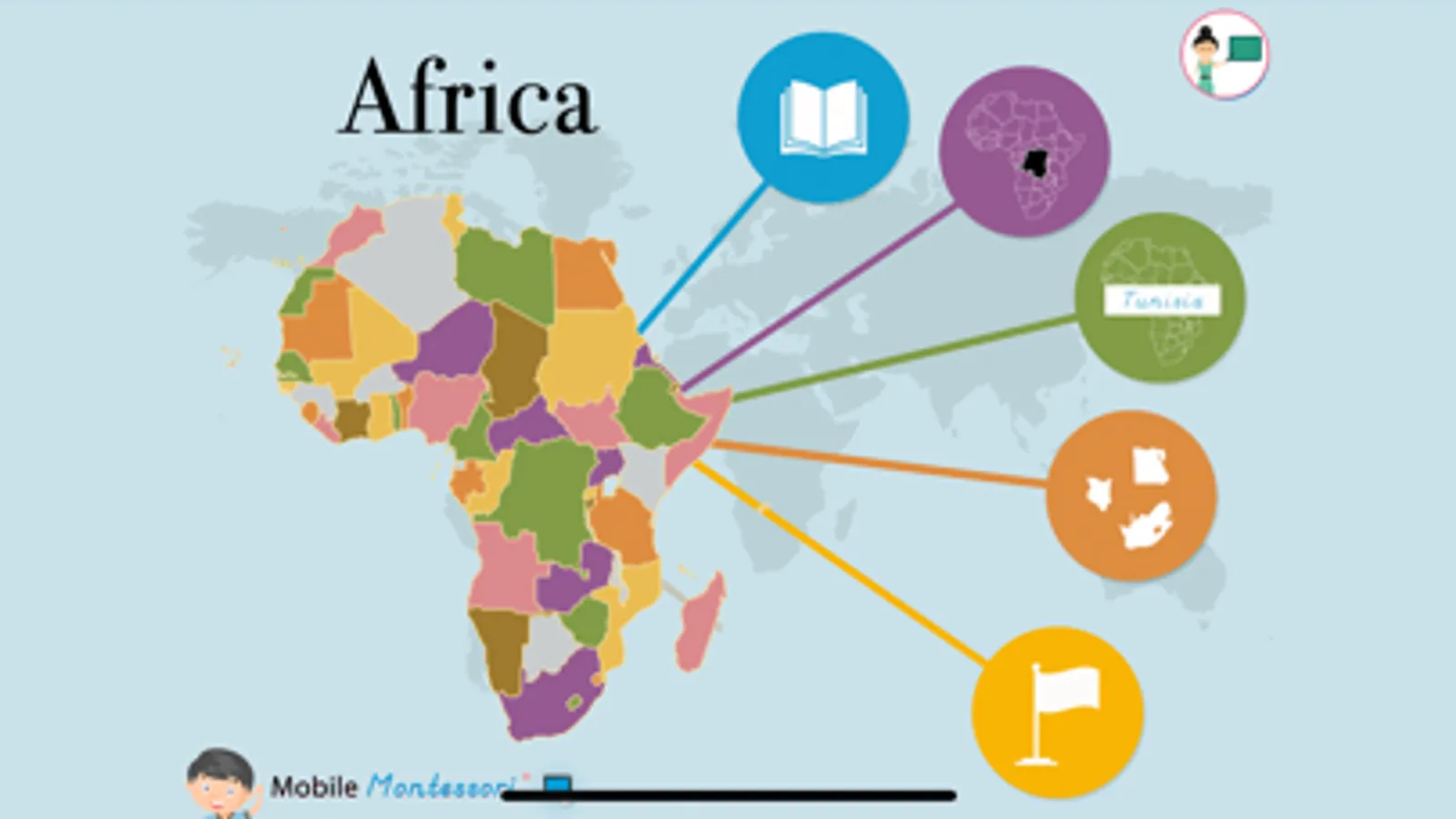 The African continent is divided among over 50 countries! Learn the names and locations of all the countries in Africa with this app that beautifully complements the geography materials used in the Montessori Classroom!