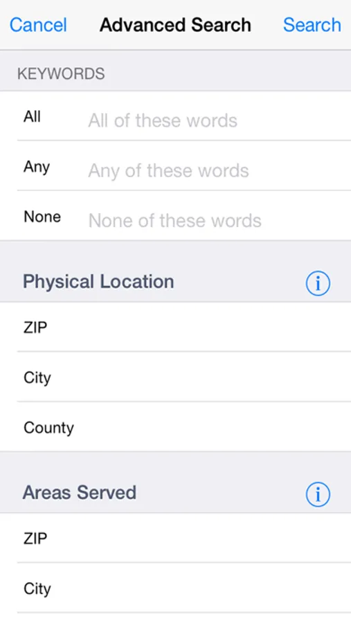 + Search for Resources by name and have the results ordered by relevancy or distance from your current location*.