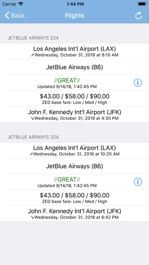 NonRev app is subscription-based, however, even without a subscription you can search for flights between LAX, JFK, ATL, ORD, and LHR.