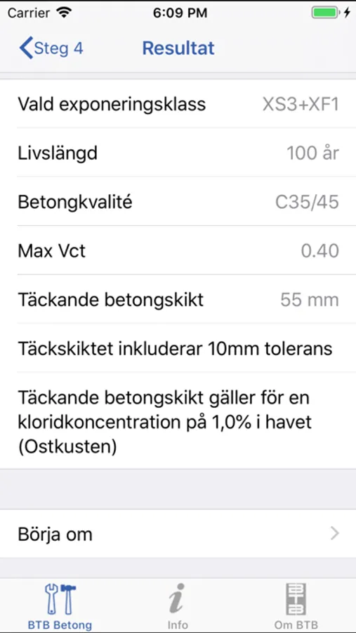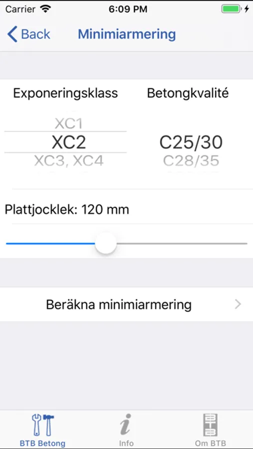 BTBs betongväljare är en app som genom ett antal frågor kan fastställa vilken exponeringsklass betongen kommer att utsättas för och därmed vilken betongkvalité och sammansättning som krävs. Resultatet skall ses som ett råd och en noggrannare analys skall alltid göras i samband med projektering.