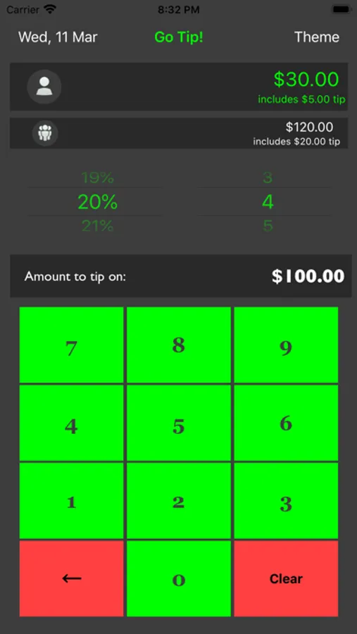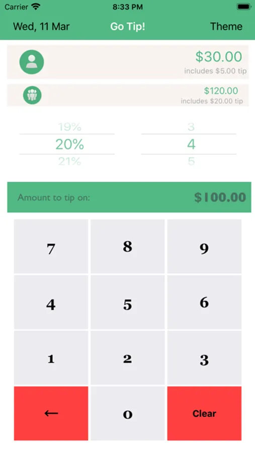 Go Tip is a simple-to-use, fast bill splitter and tip calculator. It displays the bill amount for the individual, and group based on the tip percentage.