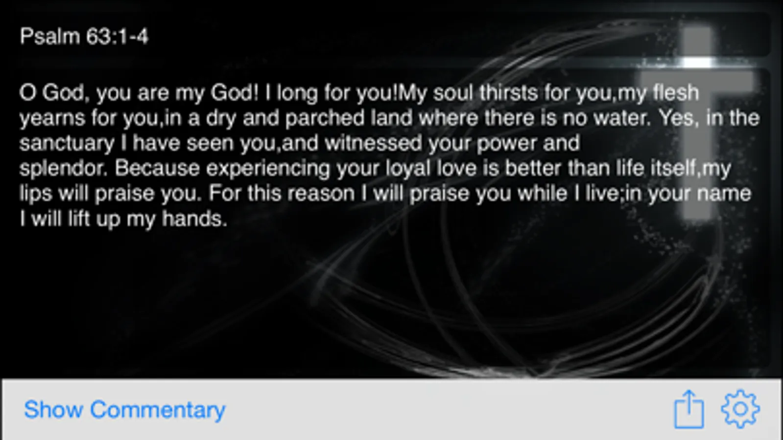 Delivers a new bible verse each day that engages you with commentary, allows you to select a preferred translation, and provides the ability to share your experience with friends via Facebook or e-mail.
