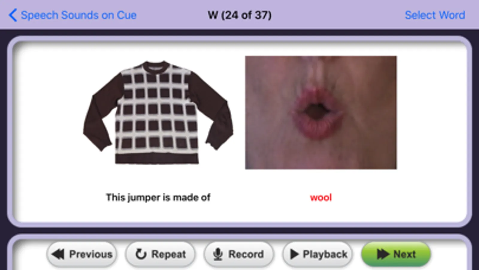 This application shows how to produce the "W" sound and words beginning with "W". It encourages speech, even in people with severe speech difficulties. This easy to use iPad application contains 39 videos, sound clips and colour photos designed to help adults and children to produce the 'W' consonant speech sound in isolation, in words and in sentences. Now includes recording, playback, rhyming words and randomisation.