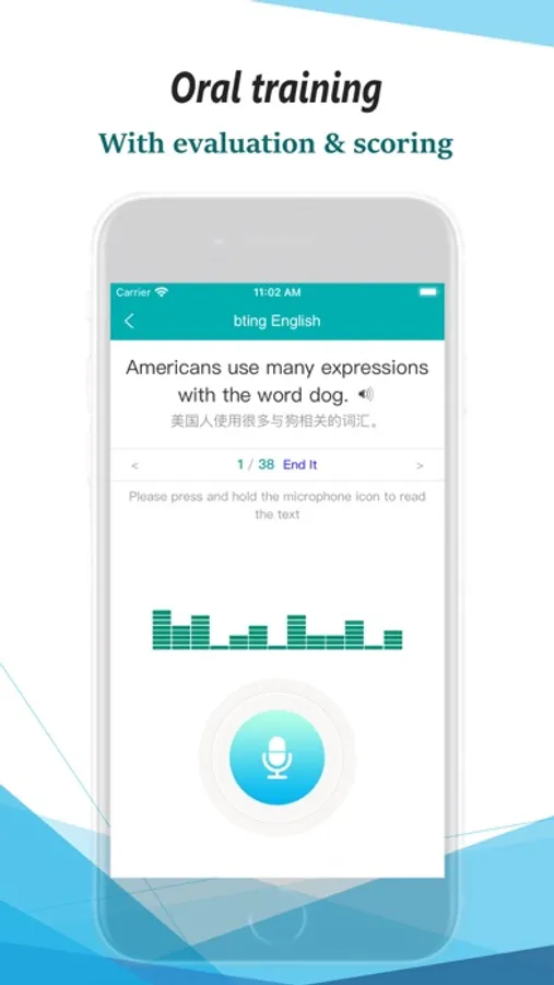 * Oral training, automatic evaluating user pronunciation. 15 minutes per day, You can speak fluent English