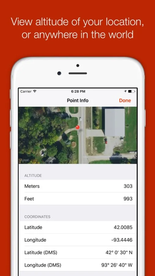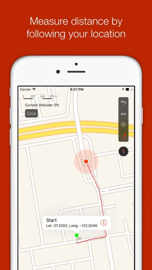 Supports quick altitude calculation without data connectivity. Find out how high up you are! Or see the altitude of ANY point (requires data).