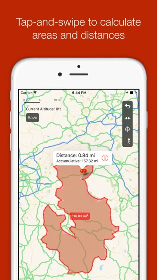 Distance Tool allows for quick and easy calculations to find distances between points on a map, including area calculations for non-overlapping polygons drawn. Includes metric (meters, kilometers) and imperial units (yards, miles, feet for altitude) for distances. Co-ordinates can either be displayed in decimal or degrees, meters and seconds.