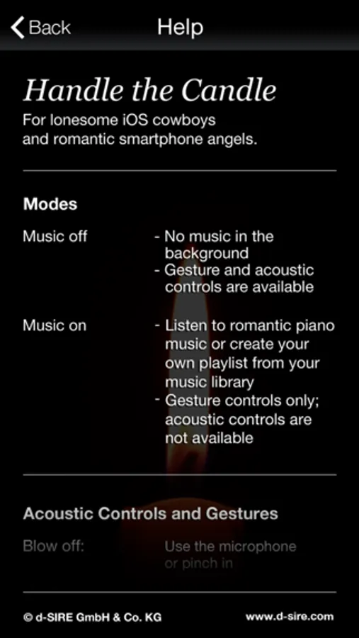 Surprise your friends: Light the candle by snapping your fingers and extinguish the flame with a gesture or by blowing it out.
