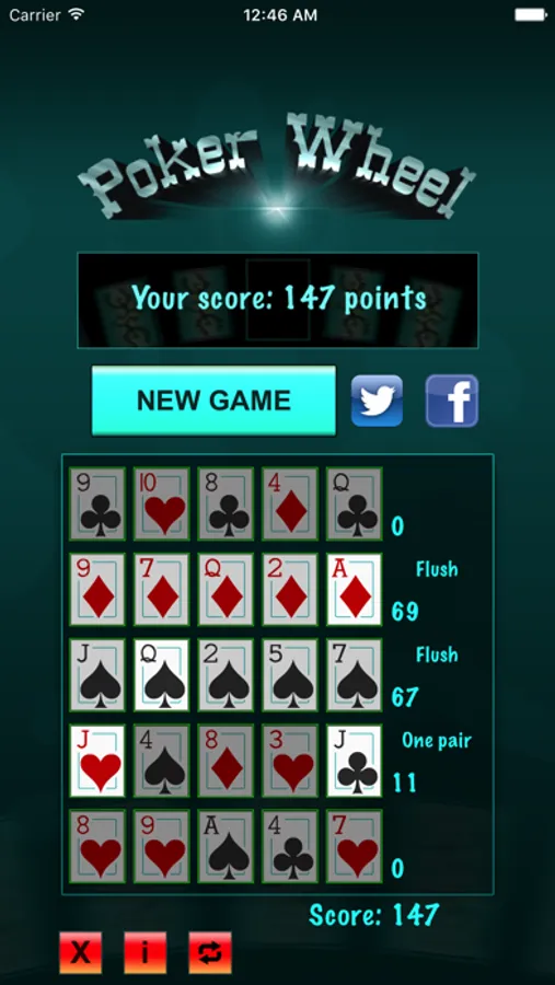 Try to collect as many points as possible by creating 5 poker hands.