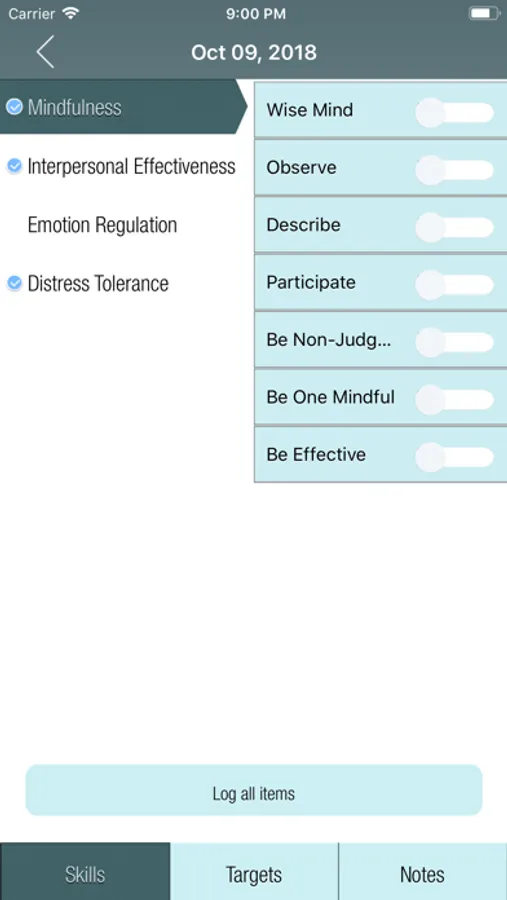 - Skills. LOTS of them. Every DBT skill you've ever heard about in a group is in here. It can be your quick reference to your skills so that you don't have to carry around your book or binder. Every skill is described in readable language to help you understand them easily and it's all just a quick tap away.