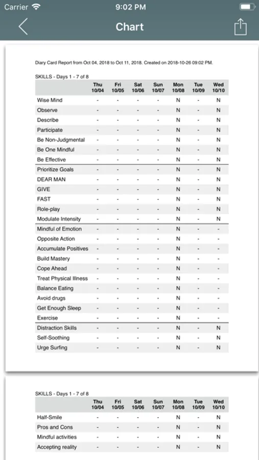 Simply put, this is the most helpful DBT or CBT app available. I bought a new iPhone to be able to use it. DBT skills are priceless. I had tried every, other DBT and CBT app. This one follows the traditional DBT program exactly, and is the only Diary Card. Before I had this app, I'd seldom fill in my diary card. Now that I have it, I don't have to keep track of paper, and I rarely miss a day. I can fill in my Diary Card discreetly, from anywhere, anytime, and send it directly to my DBT coach. I no longer have to worry about someone coming across my Diary Cards. You can brush up on skills, use it for distress tolerance suggestions, tailor it to your needs, and even journal. I appreciate that I can add personal goals to my diary. Thank you for this app!" - iTunes US Review
