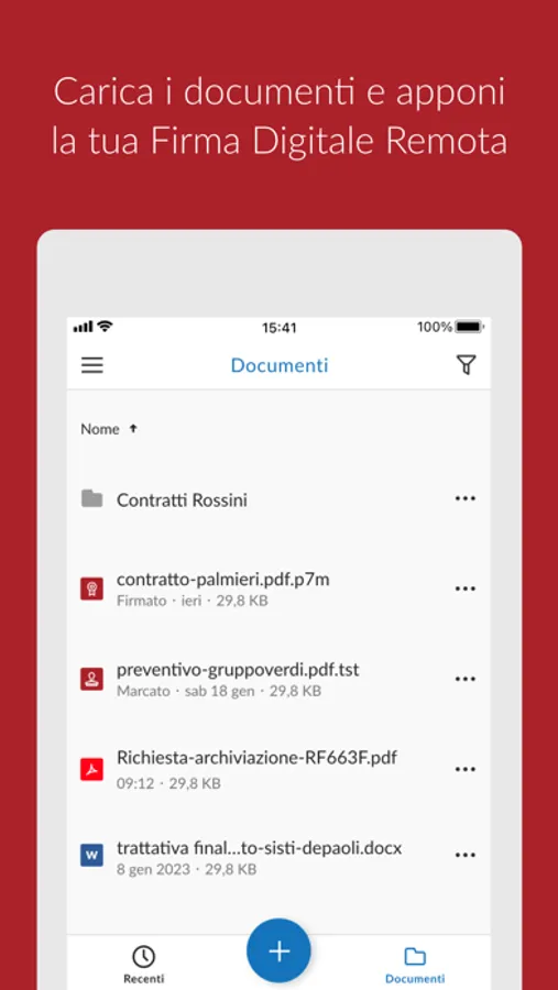 Per l’utilizzo dell’applicazione è necessario essere in possesso di una Firma Digitale Remota.