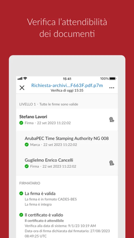 Firma Digitale Aruba è l’app di Aruba per utilizzare la Firma Digitale Remota e le Marche temporali su smartphone e tablet. Consente la firma qualificata e marcatura temporale dei documenti secondo la vigente normativa Italiana. Il Software permette anche la verifica dei documenti firmati digitalmente e/o marcati temporalmente.