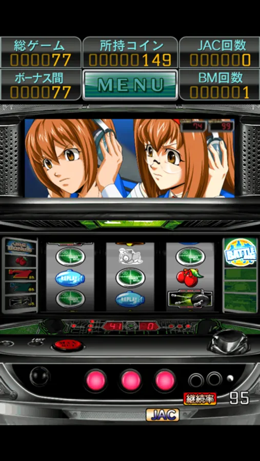 BATTLE MODEはREGULAR BONUS(2027ではJAC GAME)と同時に成立するARTであり、