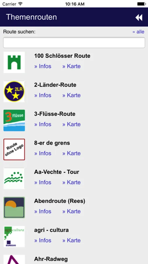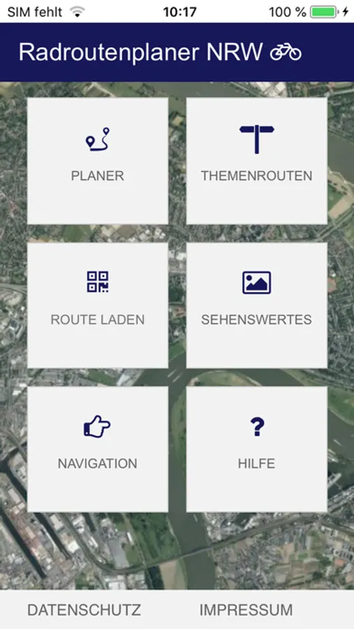 Diese mobile Anwendung bietet die Grundfunktionen des Radroutenplaners, der unter der Adresse: http://www.radroutenplaner.nrw.de erreichbar ist, erweitert um die Möglichkeiten der Positionsbestimmung. So kann man beispielsweise bei der Angabe des Startpunktes den momentanen Standort wählen. Bei der Ansicht der Karte oder dem Luftbild mit der berechneten Route besteht die Möglichkeit, die aktuelle Position einzublenden und die Karte bei der Fahrt mitwandern zu lassen.