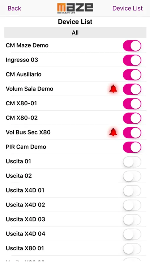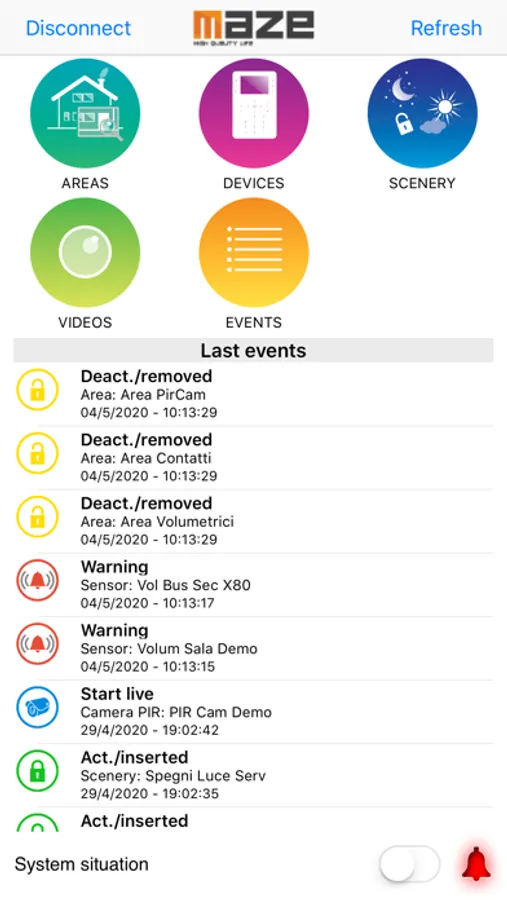 With this app you could handle a MAZE® plant approaching to home automation functionality, play video streaming and check the status of sensors.