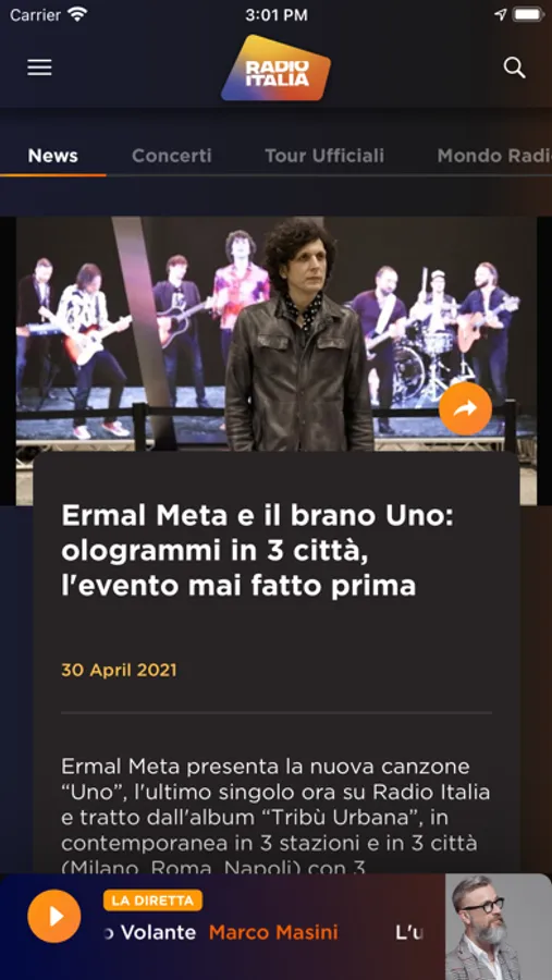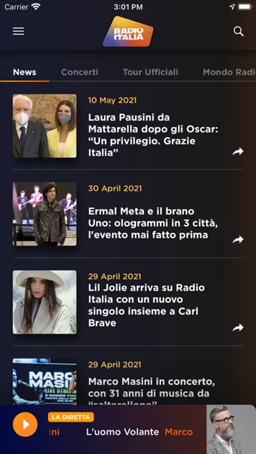Ascolta Radio Italia, guarda Radio Italia Tv in diretta. Scopri le photogallery esclusive e leggi tutte le news di musica italiana. Con la nuova funzione "Io c'ero" immortala i momenti unici vissuti con noi.