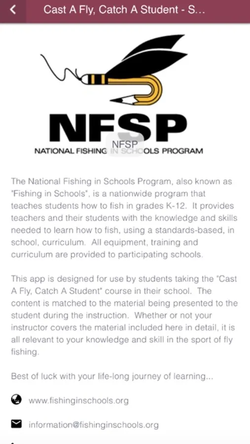 About Us, Knots, Equipment, Casting, Insects, Flies, Fish, Lesson Plan Videos, Lesson Plan Worksheets, Quizzes, How To . . ., Learn How To Fly Fish App, First Fish On A Fly, Why Fly Fish..., NFSP Store, Facebook