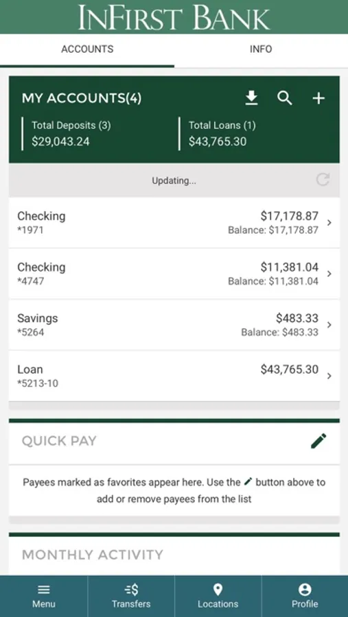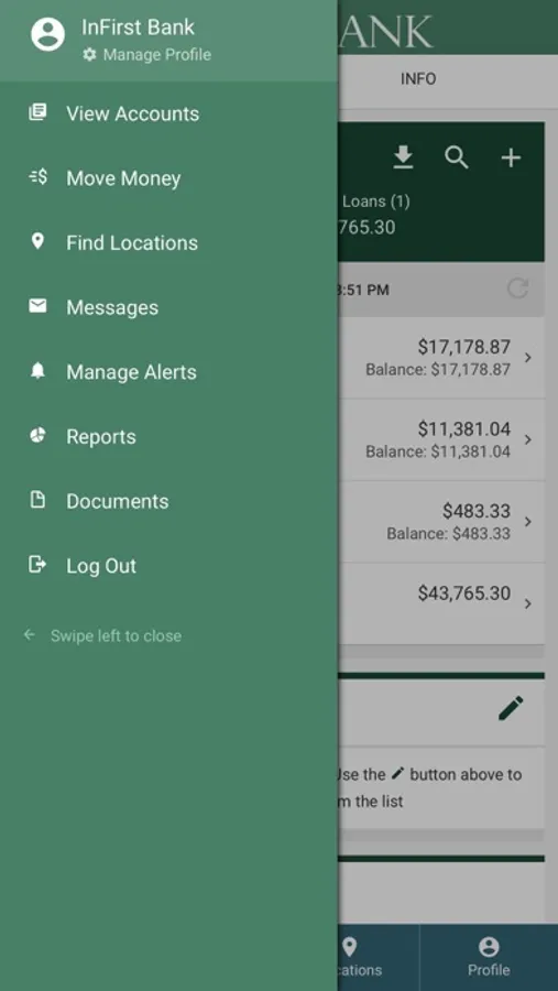 With InFirst Bank's Mobile Banking App, you can: Check your balances, view recent transactions, pay bills, view and activate your cash back offers, transfer funds to eligible accounts, deposit checks, locate an ATM, and access your accounts with as much security as Online Banking.