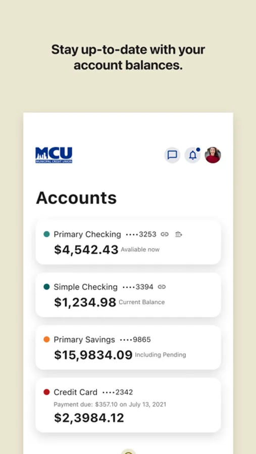 Municipal Credit Union's new Mobile Banking app gives you access to your accounts 24/7 right from your mobile device. Quickly and securely access your accounts with Face ID or Touch ID.