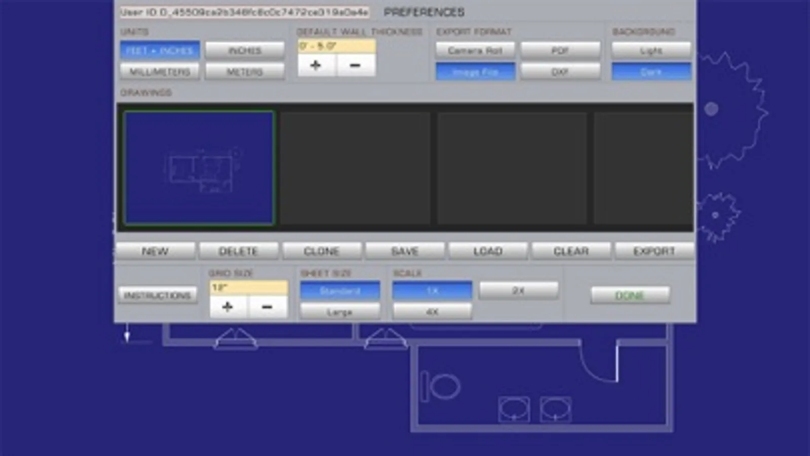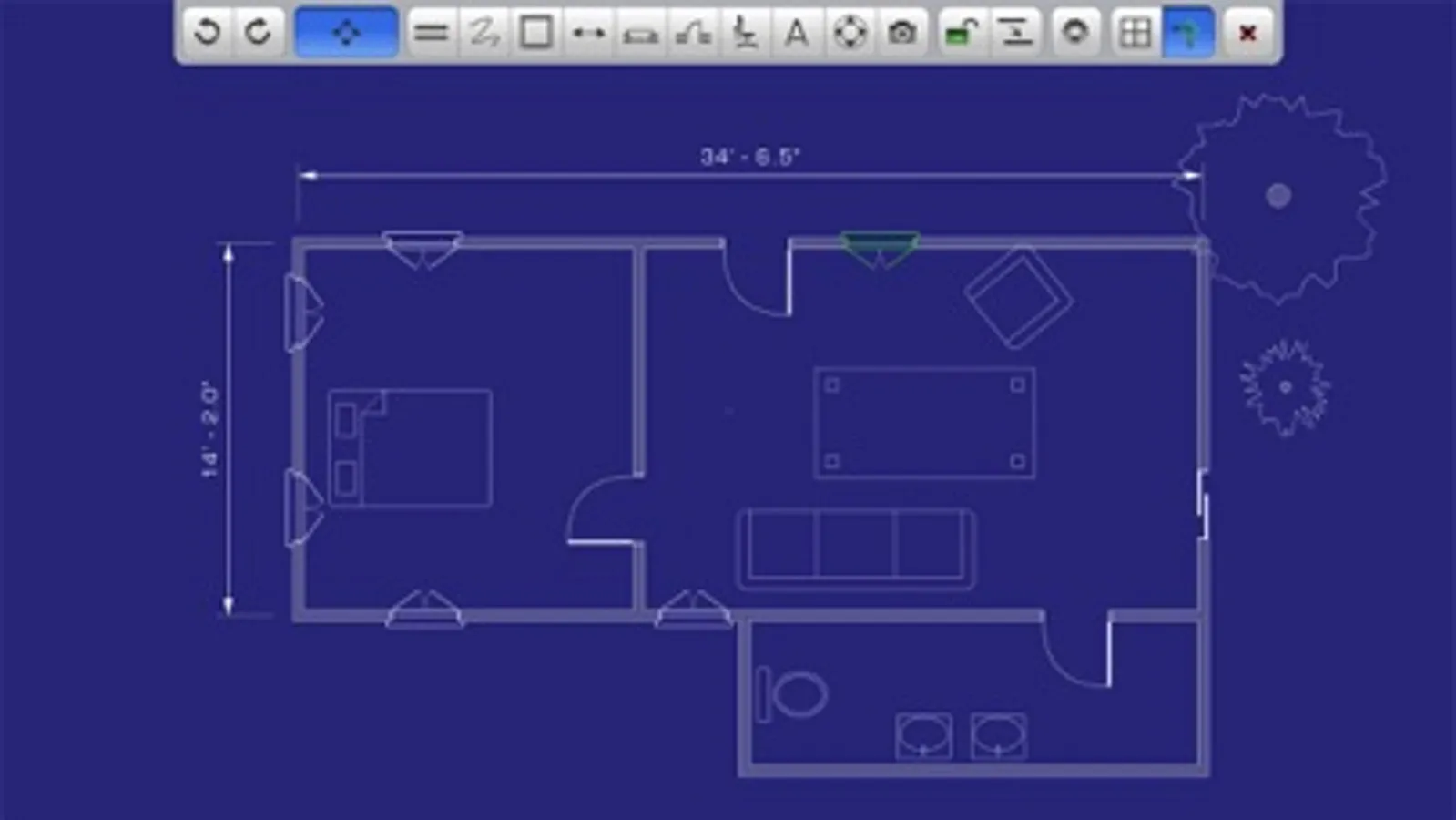 5) Intuitive Zoom & Pan: Use two fingers to zoom in and out of your drawing, just like you would with any other picture on the iPad. You may also pan the drawing simply by dragging your finger. The drawing area is larger than the iPad screen which allows you to export projects as large as 170' x 128'.