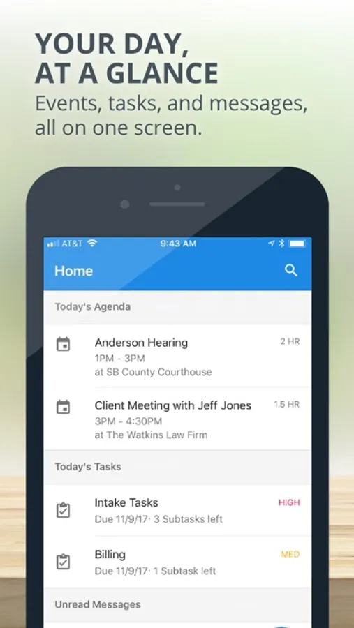 See your day, at a glance: Upcoming events, tasks, and new client messages are instantly available when you open the app