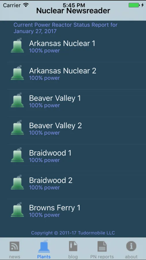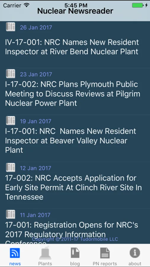 Nuclear News Reader displays the public RSS news feed, plant status, NRC blog, and Preliminary Notification (PN) Reports from the US Nuclear Regulatory Commission (NRC).