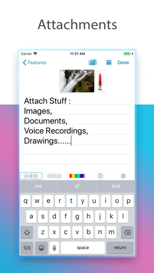 + Note attachments: photos, documents, voice recordings, drawings, video links.