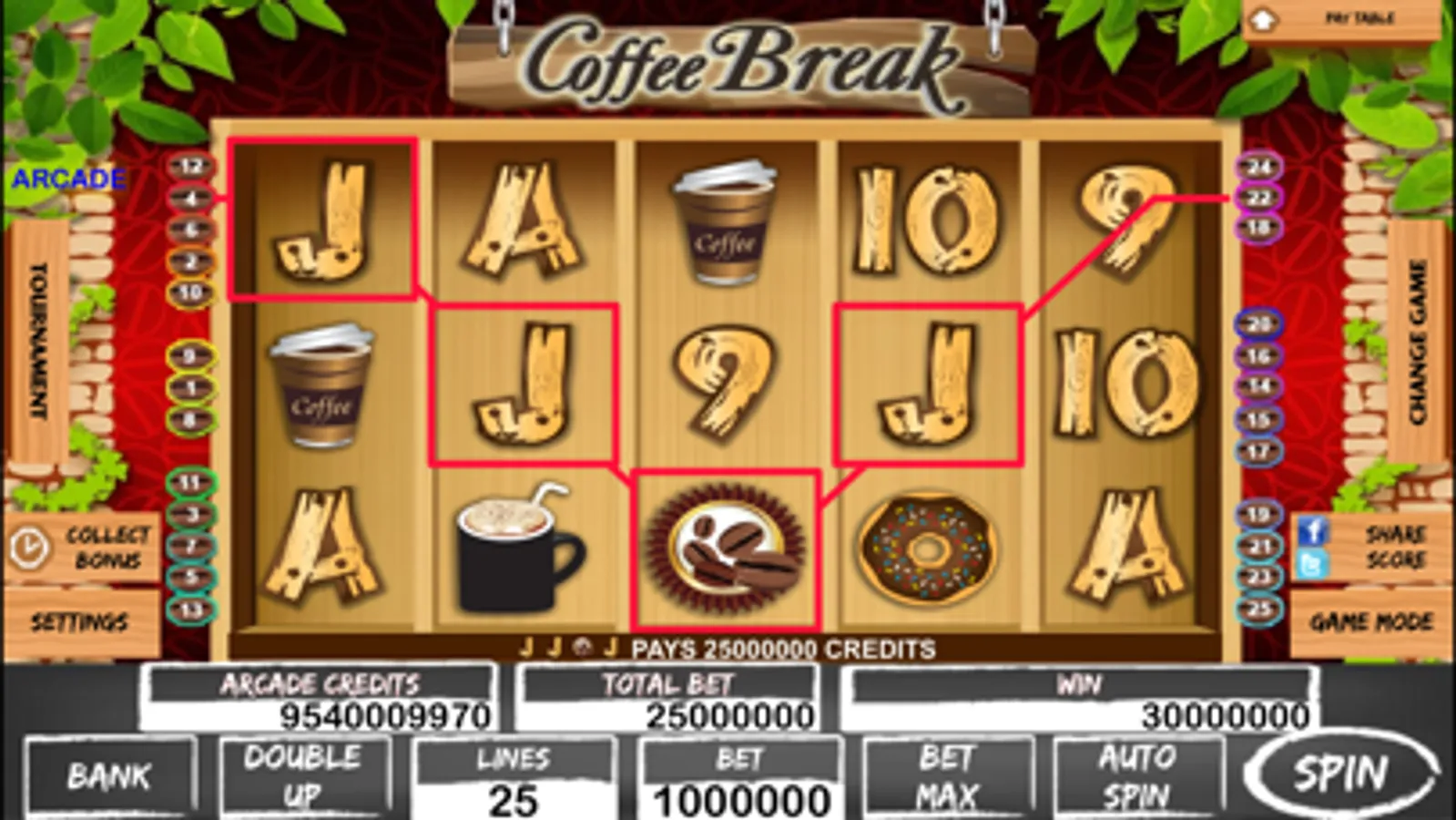 Coffee Break is 25 lines and offers a multiplier free game feature.