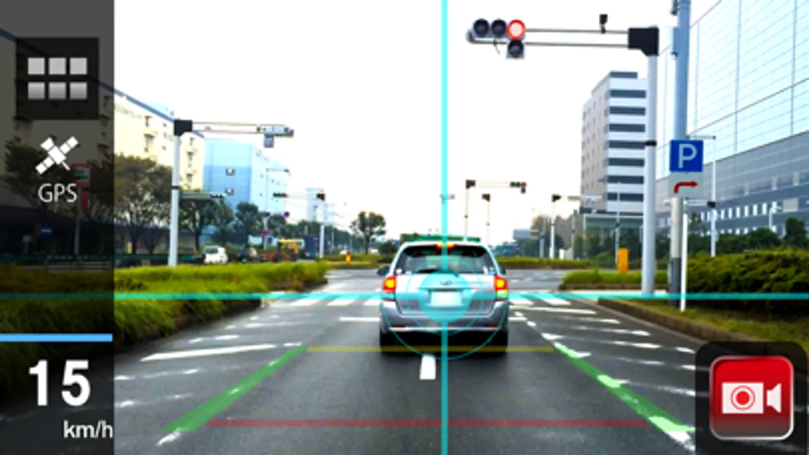 iPhone camera, and if you approach to the car ahead too close it will sound the alarm to notify the danger.
