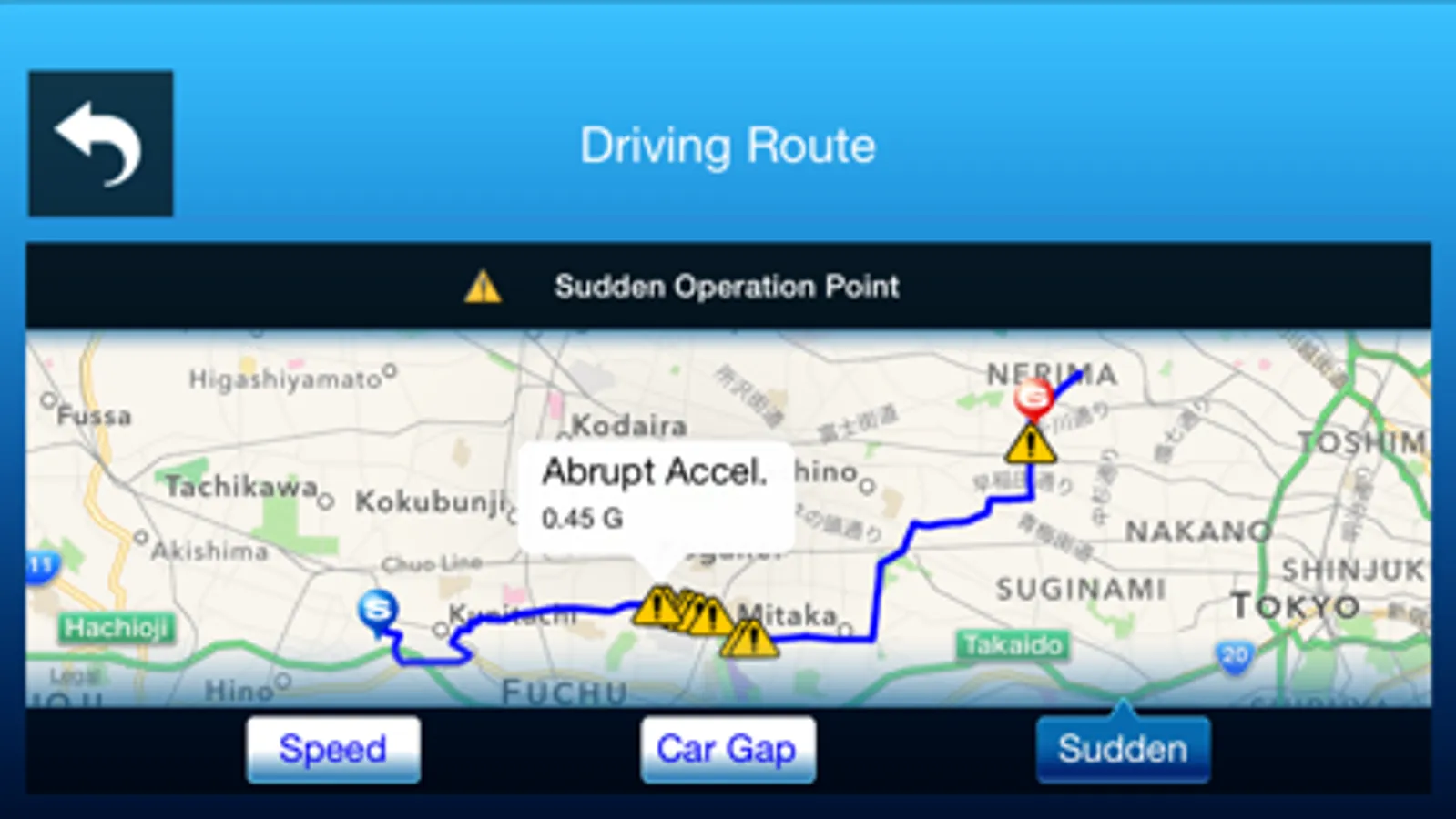 Show the driving data on the map with various info such as dangerous location point etc.