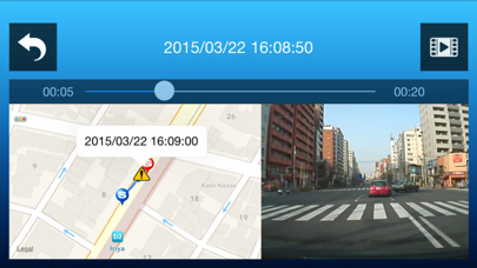 The recorded video can be easily exported to the camera roll with included route map.