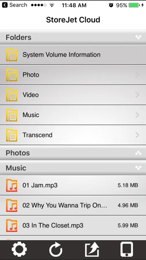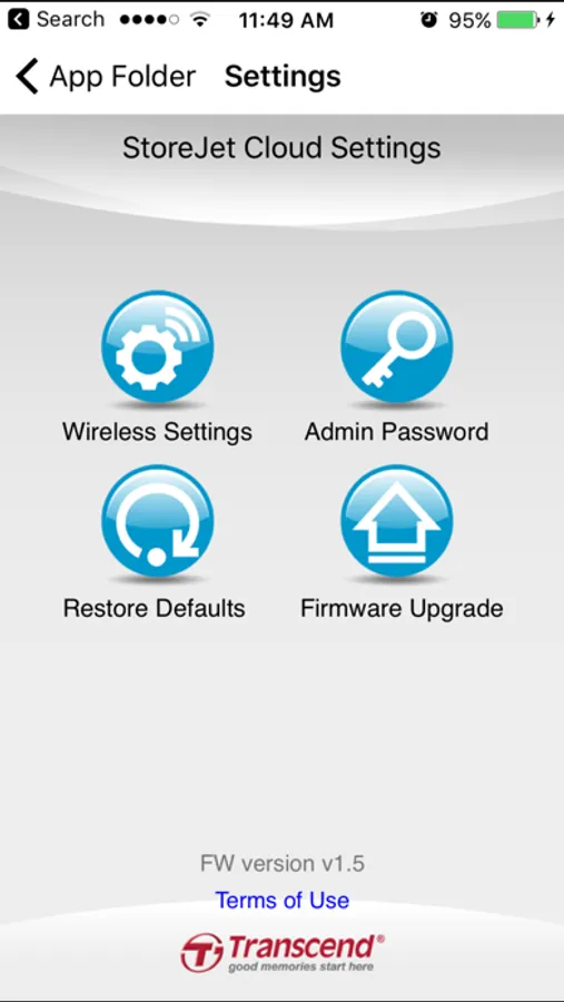 The StoreJet Cloud App for iPad/iPhone/iPod is an all-in-one media player that allows you to navigate and stream files stored on your Transcend StoreJet Cloud wireless flash drive. All of your photos, documents, eBooks, music, and movies are listed within the App for easy search and select. Accessed via a dedicated Wi-Fi network; StoreJet Cloud provides much-needed freedom from cables, network coverage, and capacity limitations of your mobile device. And with up to 5 users sharing content at the same time, StoreJet Cloud lets everyone view, read, listen or watch whatever they like, anytime, anywhere.