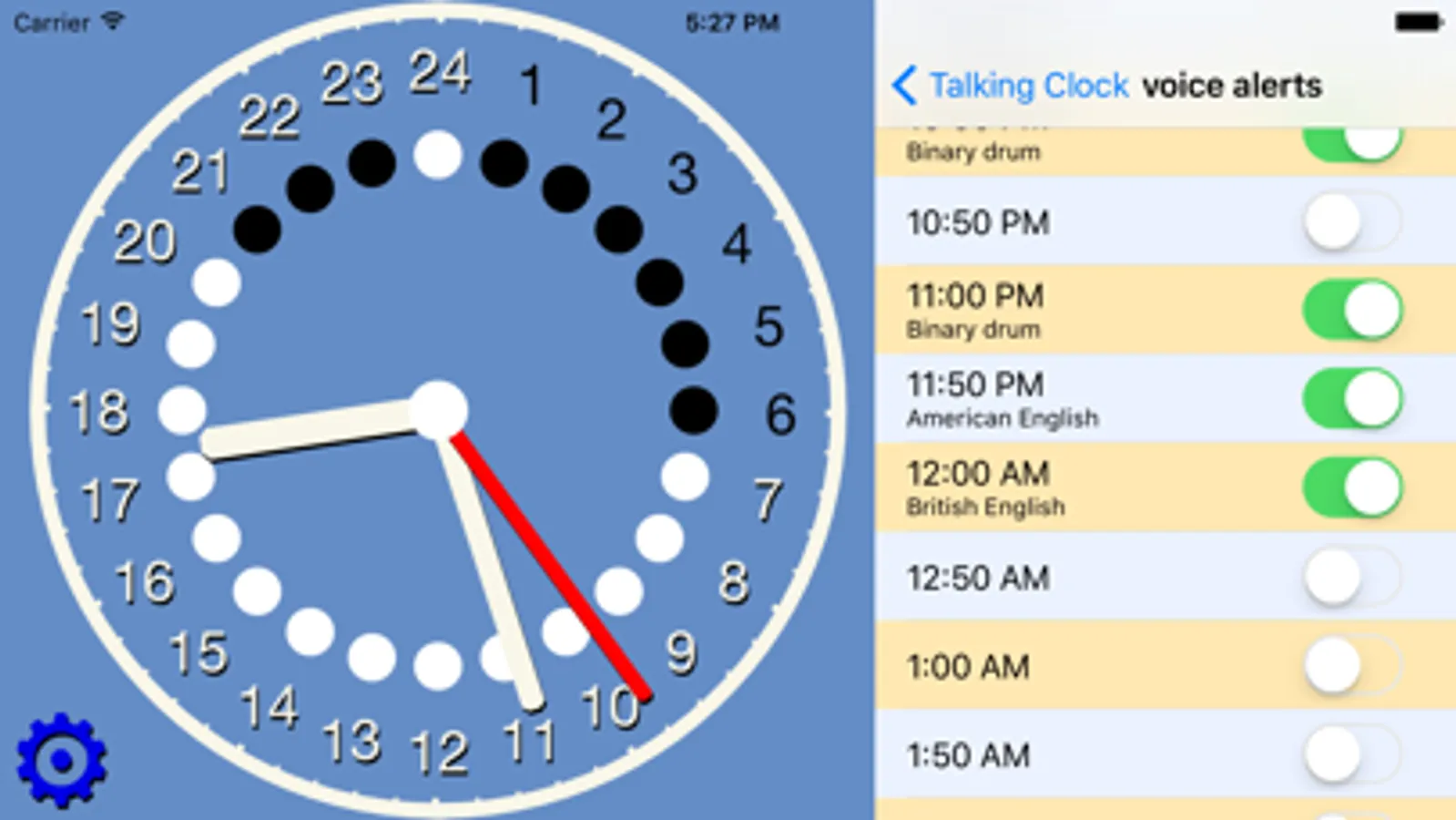 - Talking Binary Clock - listen to the exact time in silent environments, beeps in a nice and not annoying tone. (something like HIGH,LOW,HIGH - at 5PM - because 1*4+0*2+1*1=5)