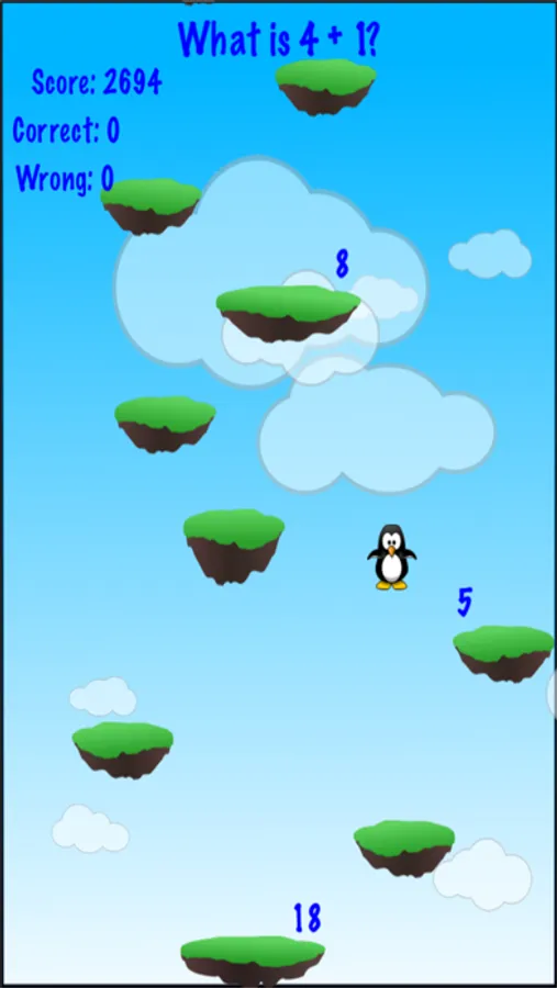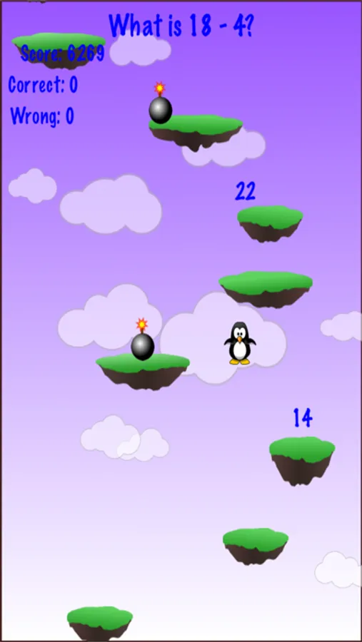 Travel up the platforms to receive points. To receive bonus points, answer each math question by jumping on the correct number. Avoid the bombs in the higher levels.