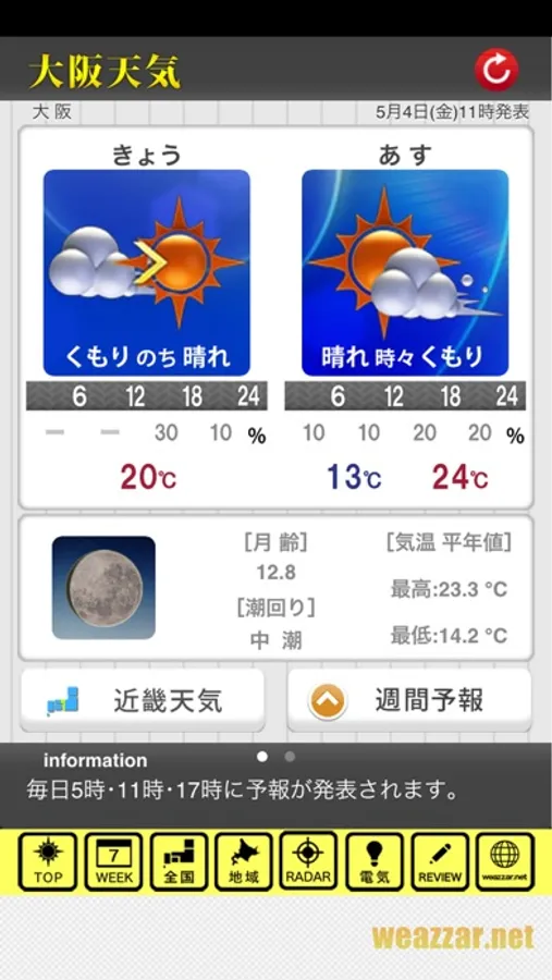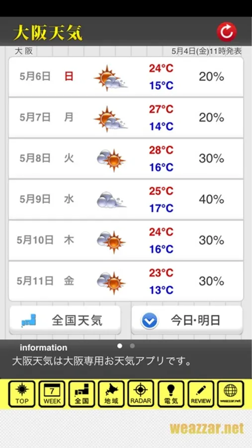 ・週間天気予報(毎日5時 11時 17時に気象庁が発表)