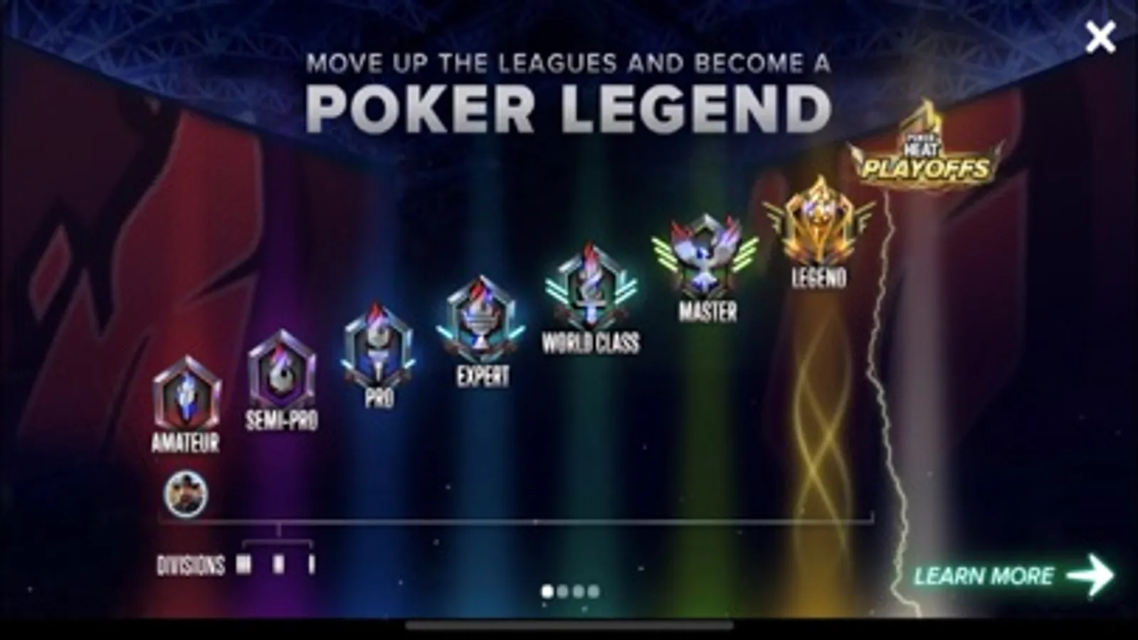 Get your daily free poker chips bonus multiplied by your league ranking! The higher the league – the bigger the multiplier! A Prize pool filled with free chips awaits the league’s top poker players in the Promotion Zone. Reach the World Class league to become a poker legend of poker stars in Poker Heat - the best online Texas Holdem app! Play poker online games anytime, everywhere!