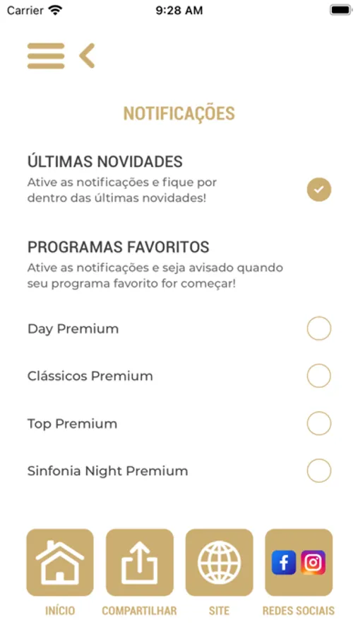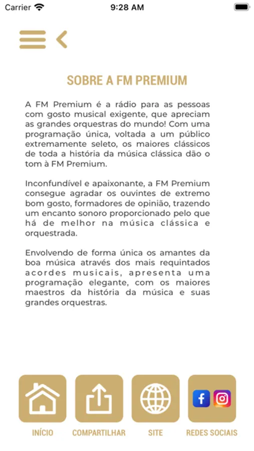 Aplicativo da FM Premium, uma emissora da Rede Pampa de Comunicação.