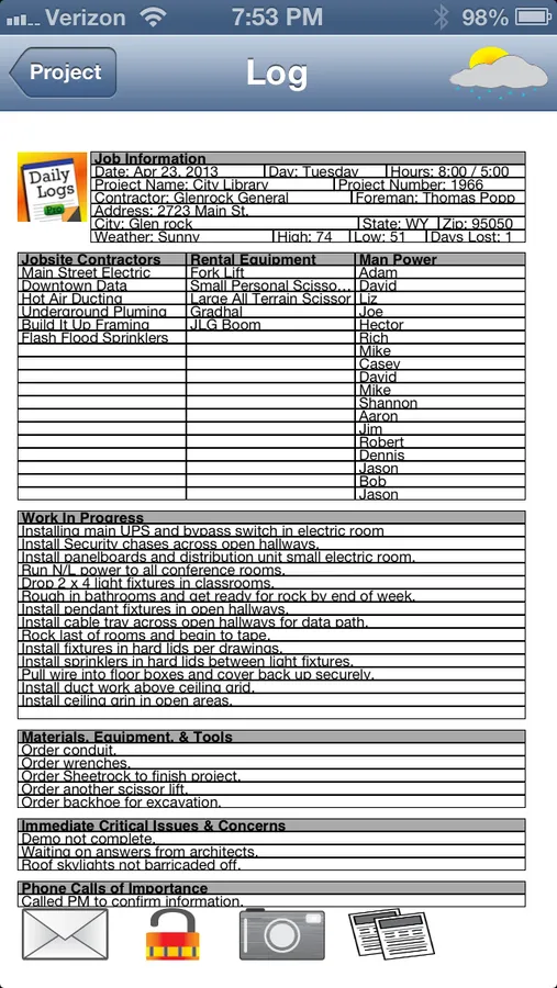 Manage your daily activities across multiple projects. This feature allows you to jump between projects without having to carry multiple journals. Easily stored on your device for reference when you need them.