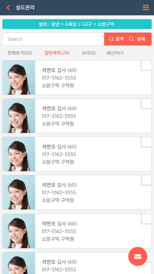 교적 개인 정보 검색