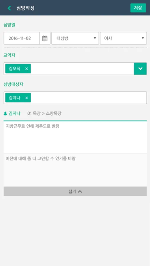 개인별 특이사항/기도제목 등록 기능
