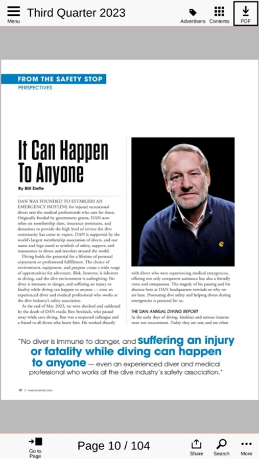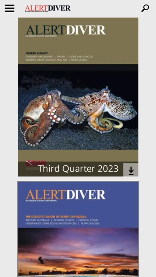 Published quarterly, Alert Diver is a benefit to members of DAN; its companion website, AlertDiver.com, is available to all. If you are a current DAN member (DAN America region), everything offered in this app is included in your membership and free to you!