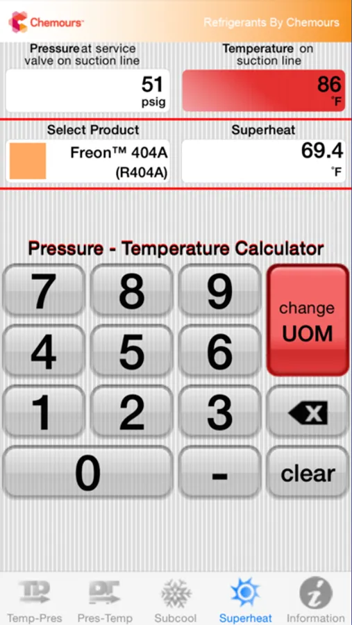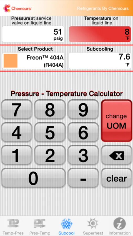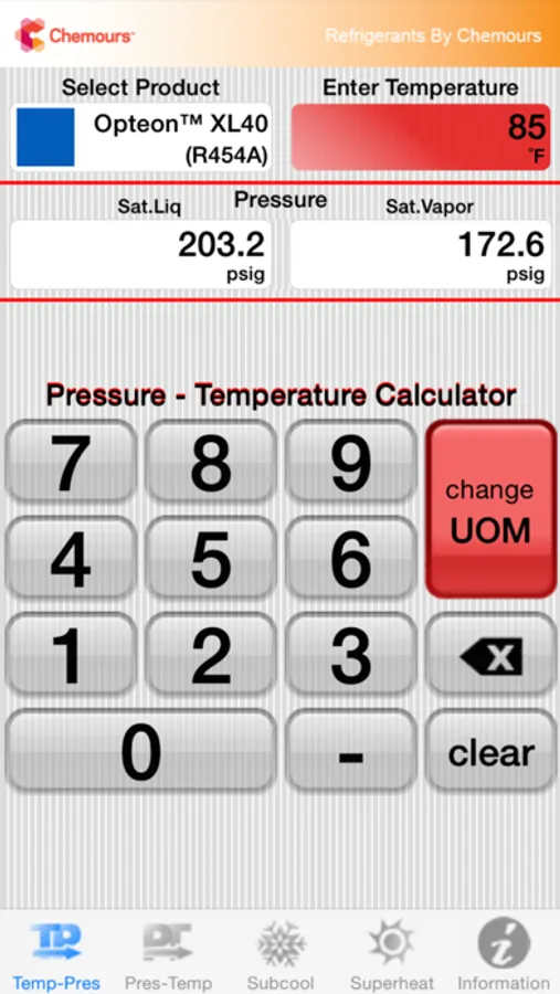We’ve taken the traditional paper P/T chart you’ve relied on for so many years and adapted it for the technology of today. The Chemours Pressure-Temperature calculator mobile app gives HVACR service technician’s handy and accurate refrigerant data on the go, enabling quick and reliable system diagnostics and response. Refrigerant options on the app include all major refrigerant products including our recently commercialized Opteon™ HFO refrigerants, as well as their Freon™ HFC and HCFC incumbents. Data available for each refrigerant includes: % composition, physical, chemical, environmental properties, temperature glide, typical use applications and lubricant recommendations. The Chemours PT Calc will display the corresponding pressure when a temperature input is given or provide the temperature for a given pressure reading. For refrigerant blends, both the saturated vapor and saturated liquid values are provided. The user can specify the data in either English or metric units. In addition, the Chemours PT Calc also quickly calculates the superheat and/or subcooling from an operating system based on input from the service contractor in the field, allowing quick and accurate charging, start up, and/or troubleshooting HVAC systems. This is a free app from Chemours.