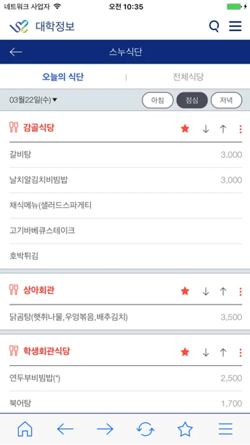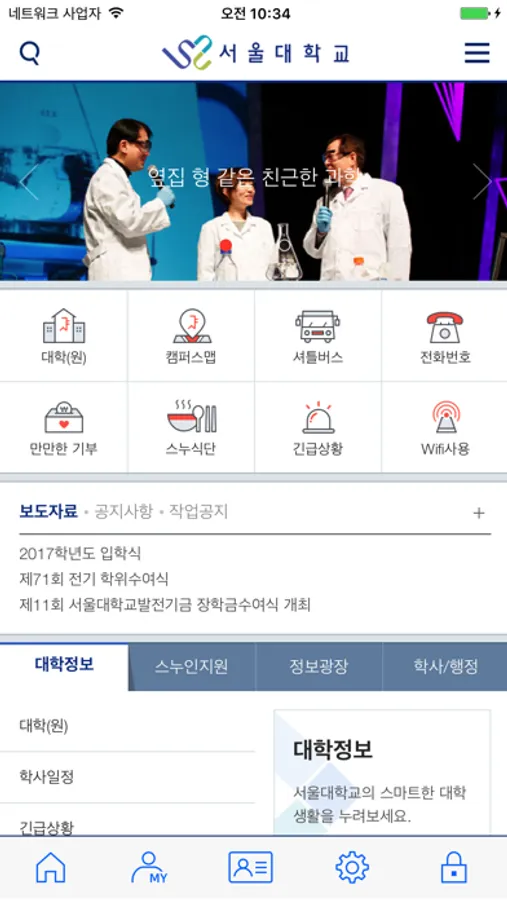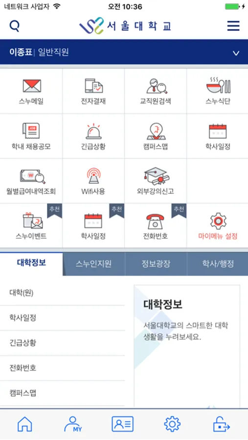 2. 대학정보 : 대학(원), 학사일정, 긴급상황, 전화번호, 캠퍼스맵, 스누식단 등
