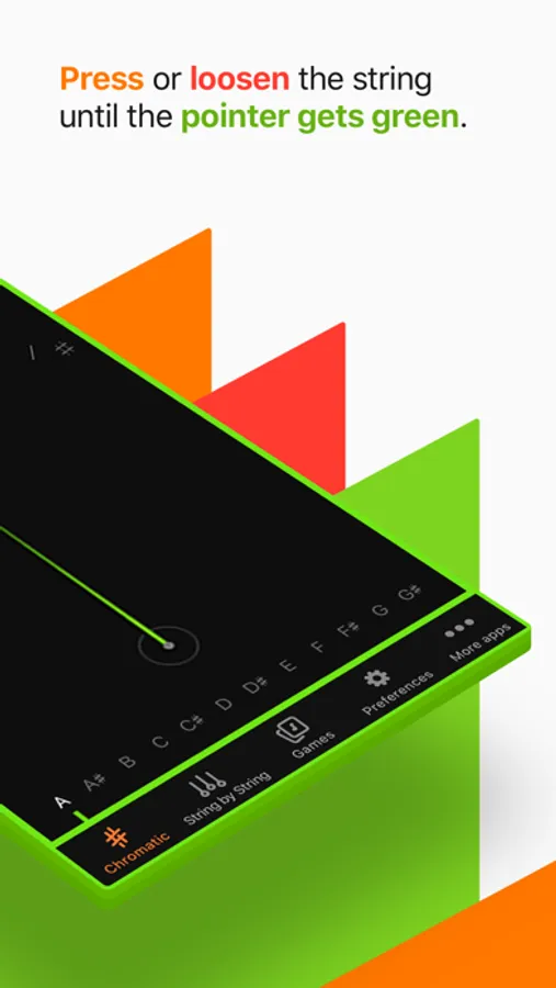 Just play a chord and then tighten or loosen the string as indicated.With this app you may tune any string instrument there is, including the guitar, banjo, bass, ukulele, violin, viola, cello and more.