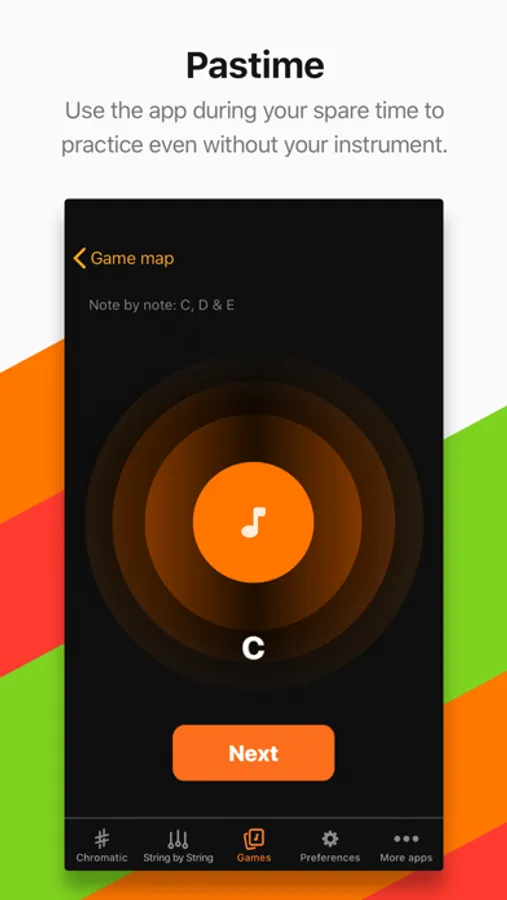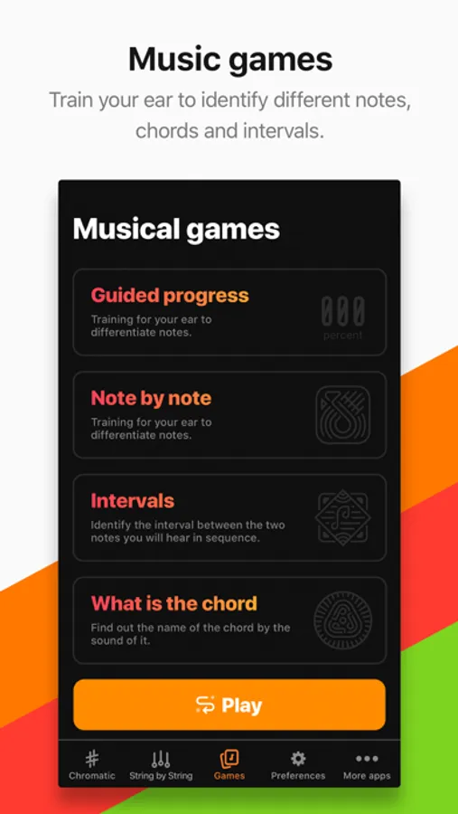 Choose a chord and start the process of step by step tuning. The text will tell you what you must do, it is even easier than the Chromatic Tuner!