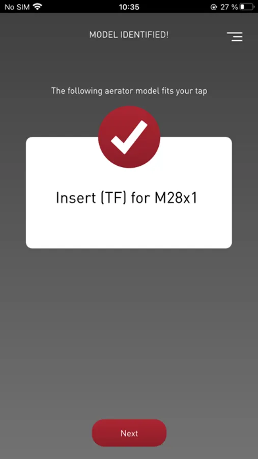 Remove the aerator which shall be replaced from the fitting and mouthpiece, ideally by using a suitable service key. Keep a handy, because depending on the model, the diameter of the aerator must be determined. Answer the questions about the appearance of the aerator. Based on your answers, the app will immediately determine the right model. If the app does not clearly identify your model, your request will be forwarded to our experts and you will receive feedback via push message within 2 days.